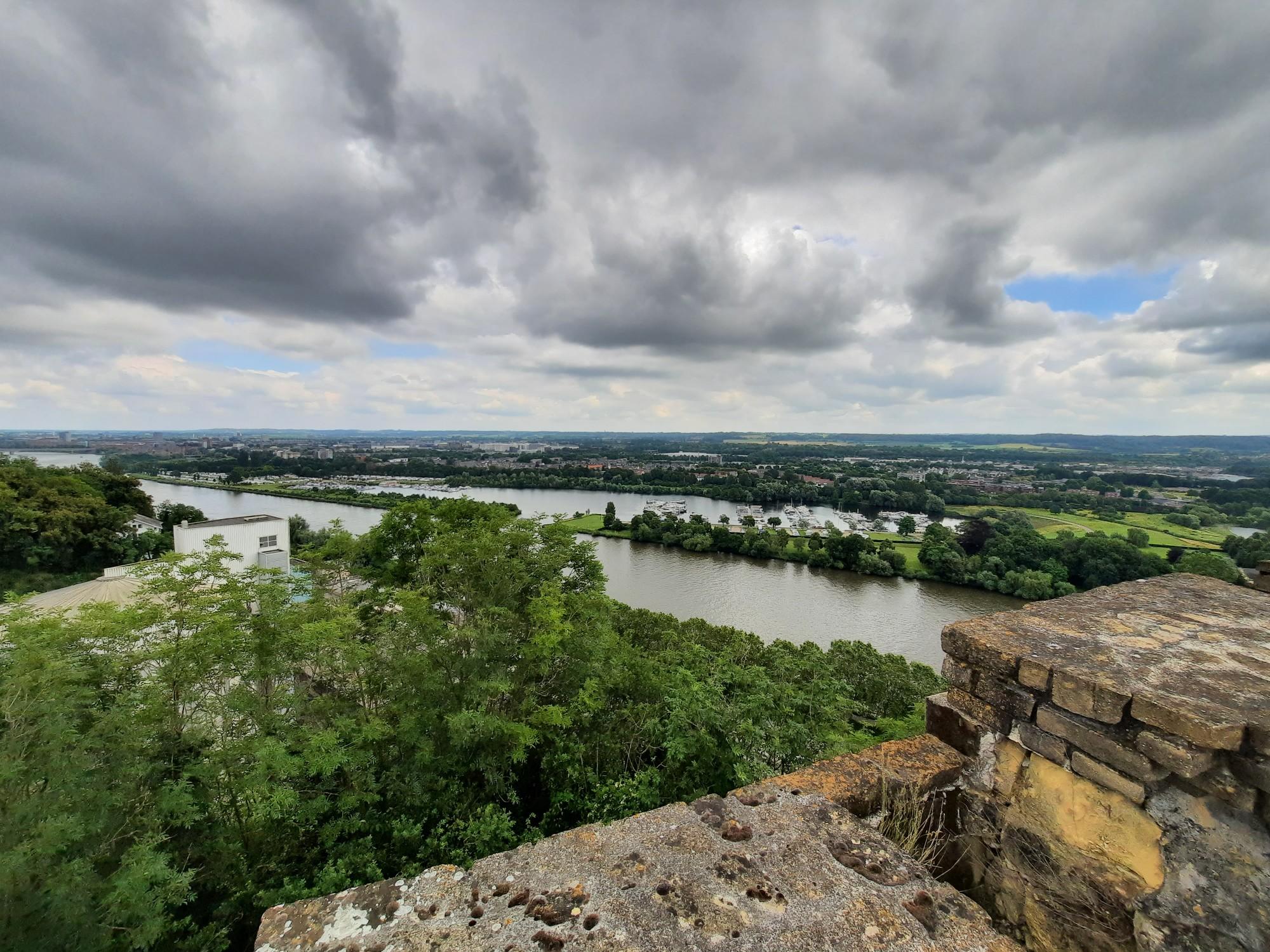 Die Wanderung führt nun 1,3 km durch den Steinbruch dann kurz in den Berg, bevor es über eine Treppe nach oben geht. Nach einem weiteren km erreichen wir die Ruine Lichtenberg mit schöner Aussicht auf die Maas. Nochmal 0,6 km weiter ist das Außencafe Slavante zu einer Trinkpause reserviert.