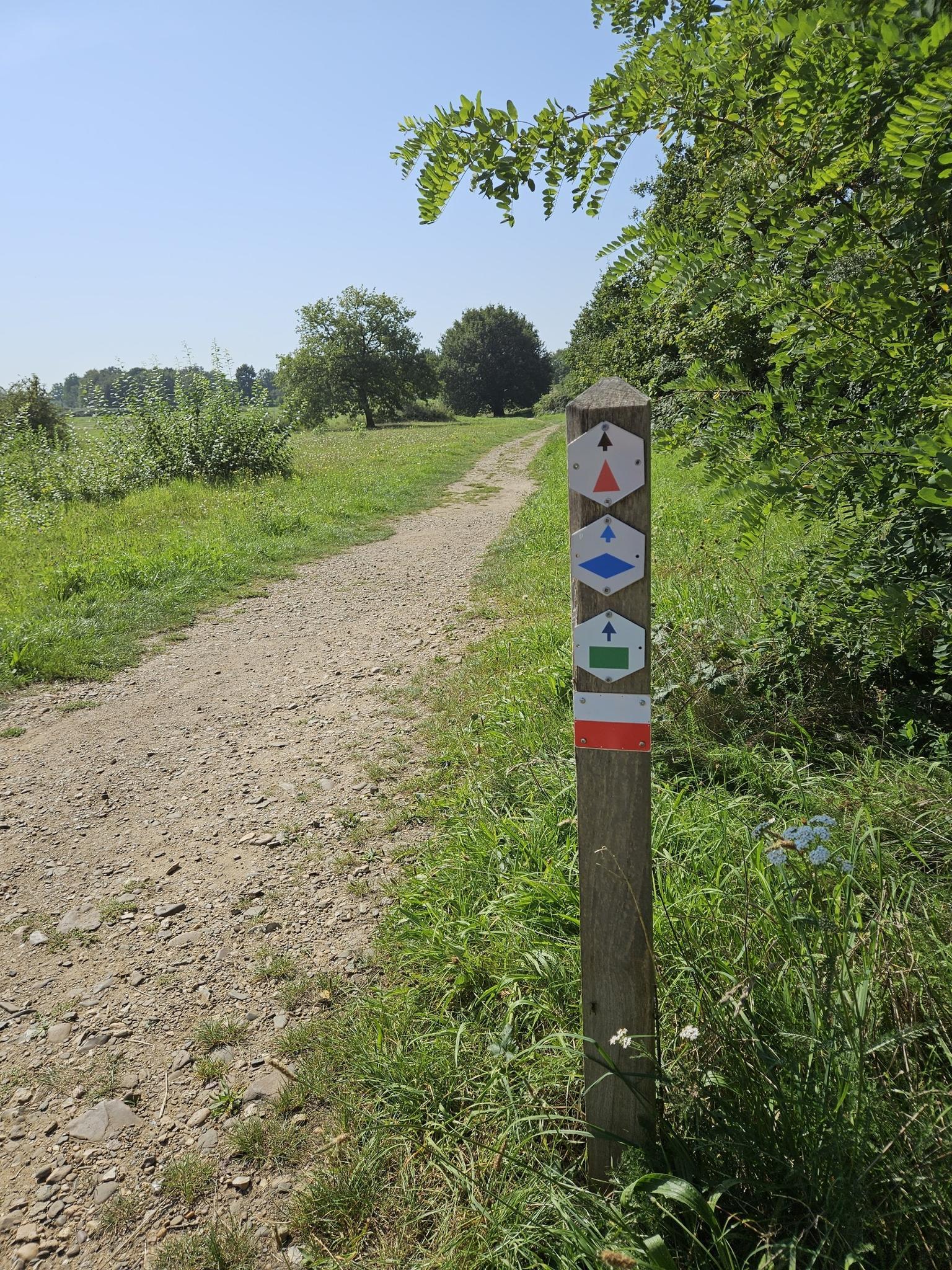 Auf zum Abstieg. Nach 0,7 km haben wir den Maasuferweg erreicht. Dort flanieren wir nun noch etwa 2,4 km bis zum Abendlokal.