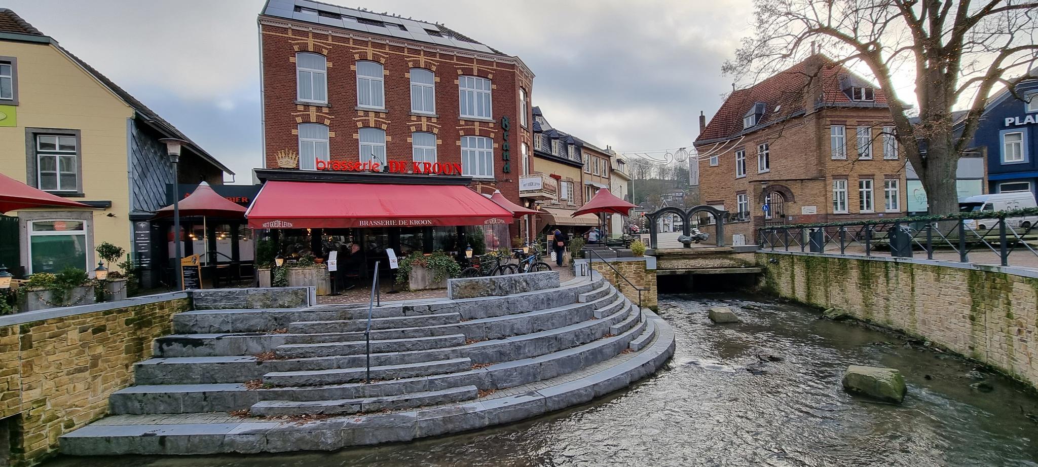 Nach 3,2 km und 70 m Gefälle machen wir in Gulpen Station. Im „Hopfengarten“ der örtlichen Brauerei kann man aus 15 selbstgebrauten Bieren wählen. Wer nicht weiter gehen will oder kann, verweilt hier bis der Bus kommt.